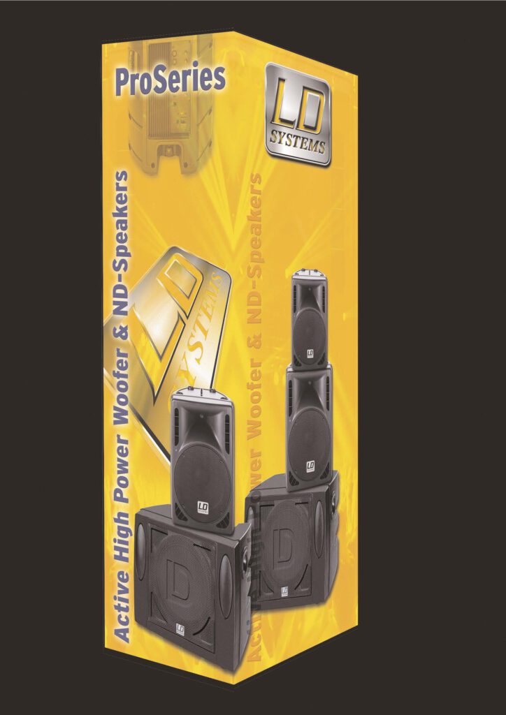 Dazu gehörten großformatige, hinterleuchtete Säulen und eine Rückwand mit Produktabbildungen auf der Gangseite. Die Rechte an den abgebildeten Produkten, Produktfotos und Logos liegen bei der Adam Hall GmbH und ihren Partnerunternehmen.